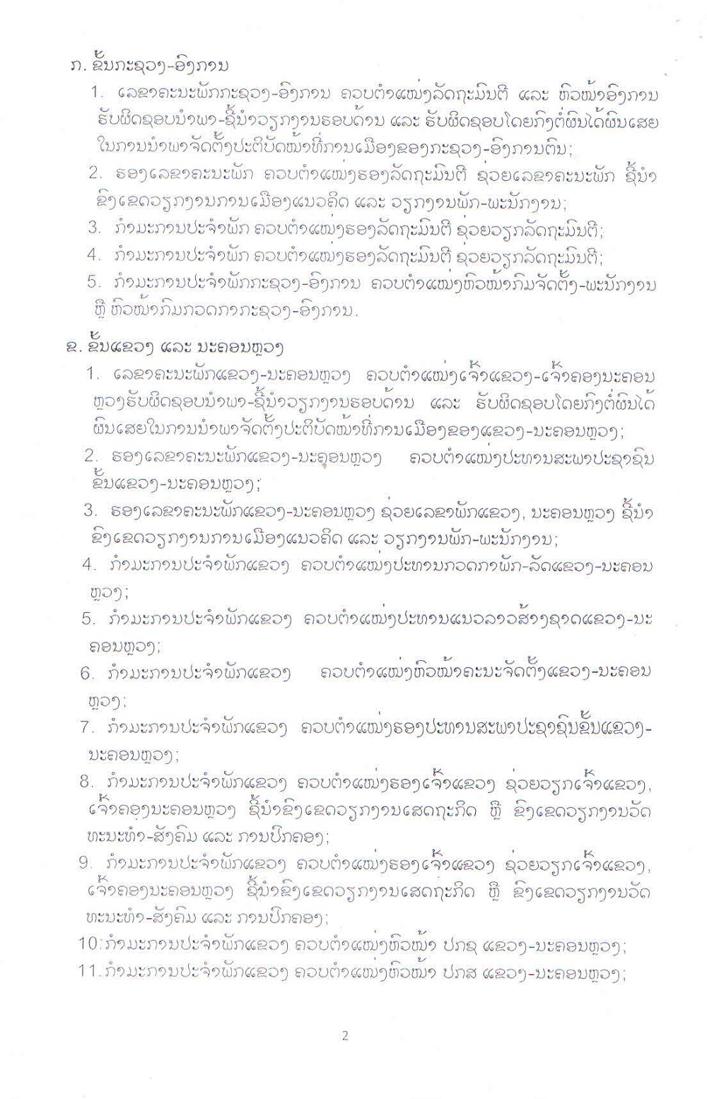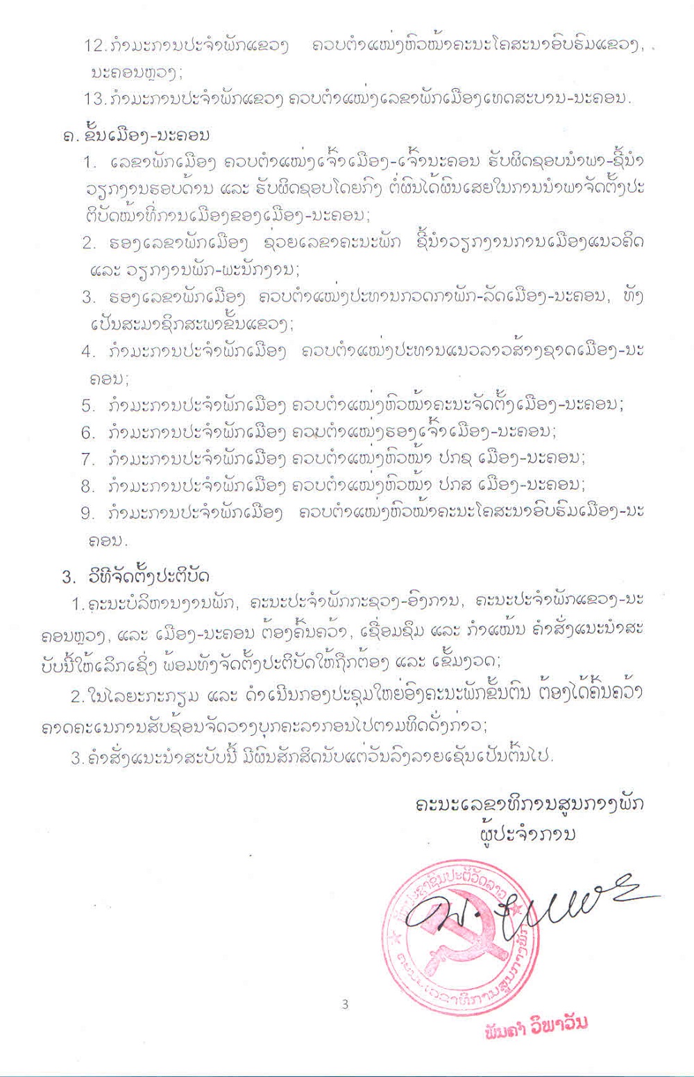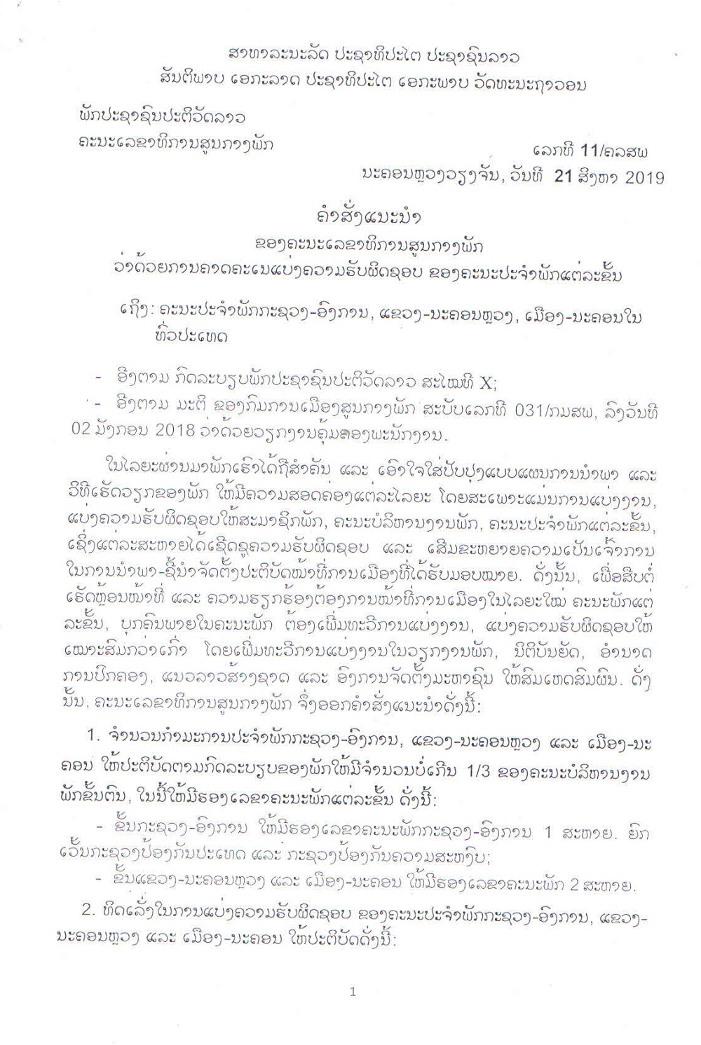 ຄຳສັ່ງແນະນຳເລກທີ 11 ຂອງຄະນະເລຂາທິການສູນກາງພັກວ່າດ້ວຍການຄາດຄະເນແບ່ງຄວາມຮັບຜິດຊອບຂອງຄະນະປະຈຳພັກແຕ່ລະຂັ້ນ