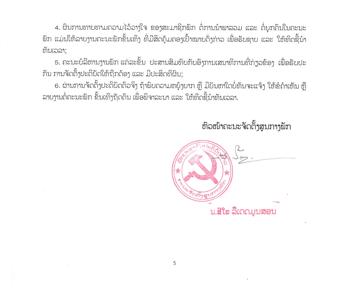 ຄຳເຫັນຂອງຫົວໜ້າຄະນະຈັດຕັ້ງສູນກາງພັກ