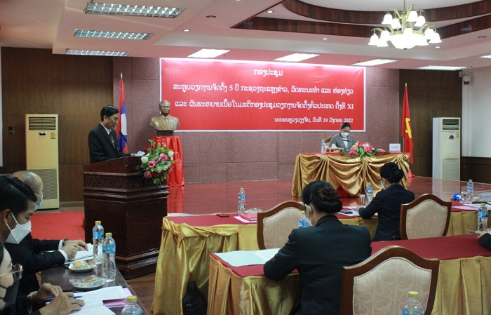 ໃນວັນທີ 24 ມັງກອນ 2022 ທີ່ຫໍວັດທະນະທຳແຫ່ງຊາດ ນະຄອນຫຼວງວຽງຈັນ, ກະຊວງຖະແຫຼງຂ່າວ, ວັດທະນະທຳ ແລະ ທ່ອງທ່ຽວ (ຖວທ) ໄດ້ຈັດກອງປະຊຸມສະຫຼຸບວຽກງານຈັດຕັ້ງ 5 ປີ (2016-2020) ແລະ ຜັນຂະຫຍາຍເນື້ອໃນມະຕິກອງປະຊຸມວຽກງານຈັດຕັ້ງທົ່ວປະເທດ ຄັ້ງທີ XI ໂດຍການເປັນປະທານຂອງທ່ານ ນາງ ສວນສະຫວັນ ວິຍະເກດ ລັດຖະມົນຕີກະຊວງຖະແຫຼງຂ່າວ, ວັດທະນະທຳ ແລະ ທ່ອງທ່ຽວ, ມີບັນດາຫົວໜ້າກົມ-ຮອງກົມ, ພະນັກງານຫຼັກແຫຼ່ງອ້ອມຂ້າງກະຊວງ ພ້ອມດ້ວຍພາກສ່ວນກ່ຽວຂ້ອງເຂົ້າຮ່ວມ.