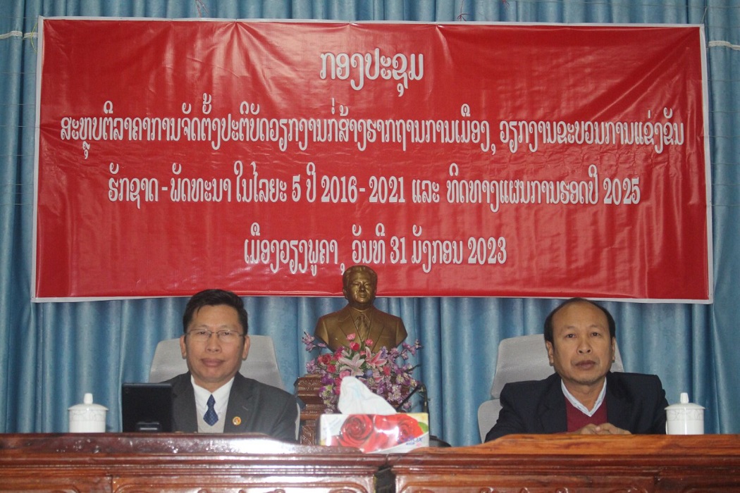 ວັນທີ 31 ມັງກອນ 2023 ທີ່ສະໂມສອນຂອງເມືອງວຽງພູຄາ ໂດຍເປັນກຽດເຂົ້າຮ່ວມຂອງ ສະຫາຍ ຕຽງສະໝອນ ພອນປະເສີດ ກໍາມະການພັກແຂວງ ເລຂາພັກເມືອງ ເຈົ້າເມືອງໆວຽງພູຄາ, ສະຫາຍ ປອ ສຸລີວັນ ພົມມະຈິດ ຮອງຫົວໜ້າຫ້ອງວ່າການແຂວງ ມີຄະນະປະຈໍາພັກເມືອງ, ກໍາມະການພັກເມືອງ, ຫົວໜ້າ-ຮອງຫົວໜ້າຫ້ອງການ ຄະນະພັກຮາກຖານເຂົ້າຮ່ວມ. ສະຫາຍ ພູມອນ ຄູນສີລິເຮືອງ ກໍາມະການປະຈໍາພັກເມືອງ ຮອງເຈົ້າເມືອງໄດ້ຜ່ານຮ່າງບົດສະຫຼຸບການຈັດຕັ້ງປະຕິບັດ ວຽກງານຮາກຖານການເມືອງ, ພັດທະນາຊົນນະບົດ, ແກ້ໄຂຄວາມທຸກຍາກ ແລະ ວຽກງານ 3 ສ້າງ ໃນໄລຍະ 5 ປີ ແຕ່ ປີ 2016-2021 ແລະ ທິດທາງແຜນການ ຮອດ ປີ 2025 ສະຫາຍໄດ້ຍົກໃຫ້ເຫັນວ່າ: ເມືອງວຽງພູຄາ ໄດ້ຖືເອົາການພັດທະນາຊົນນະບົດ ແກ້ໄຂຄວາມທຸກຍາກໃຫ້ປະຊາຊົນ ບັນດາເຜົ່າເປັນວຽກງານບູລິມະສິດຂອງເມືອງ, ໄດ້ຊຸກຍູ້ ແລະ ສ້າງເງື່ອນໄຂໃຫ້ປະຊາຊົນ ເຂົ້າເຖິງສິນເຊື່ອ ໂດຍສະເພາະກອງທຶນພັດທະນາບ້ານ, ທົ່ວເມືອງມີກອງທຶນພັດທະນາບ້ານທັງໝົດ 19 ກອງທຶນ, ມີທຶນໝູນວຽນທັງໝົດ 1.660.688.542 ກີບ ມີສະມາຊິກກອງທຶນທັງໝົດ 920 ຄອບຄົວ; ເອົາໃຈໃສ່ຊຸກຍູ້, ສົ່ງເສີມປະຊາຊົນ ຫັນຈາກການຜະລິດທຳມະຊາດໄປສູ່ການຜະລິດເປັນສິນຄ້າ ເປັນຕົ້ນແມ່ນການປູກຝັງ-ລ້ຽງສັດ, ການບໍລິການ ແລະ ການທ່ອງທ່ຽວ, ສ້າງຕະຫຼາດຢູ່ຊຸມຊົນ ເຮັດໃຫ້ປະຊາຊົນມີບ່ອນຊື້-ຂາຍສິນຄ້າ ເພື່ອສ້າງລາຍຮັບເພີ່ມ ແລະ ສາມາດປັບປຸງຊີວິດການເປັນຢູ່ໃຫ້ດີຂຶ້ນເທື່ອລະກ້າວ, ເຊິ່ງສະແດງອອກ; ປະຈຸບັນມີຄອບຄົວພົ້ນທຸກທັງໝົດ 4.042 ຄອບຄົວ, ກວມ 88,31%, ຂອງຄອບຄົວທັງໝົດ; ມີບ້ານພົ້ນທຸກທັງໝົດ 31 ບ້ານ, ກວມ 67,39% ຂອງຈໍານວນບ້ານທັງໝົດ, ມີບ້ານພັດທະນາທັງໝົດ 28 ບ້ານ, ກວມ 60,86% ຂອງບ້ານທັງໝົດ, ຍັງມີບ້ານທຸກຍາກ 15 ບ້ານ, ກວມ 32,60%; ມີຄອບຄົວພັດທະນາທັງໝົດ 3.859 ຄອບຄົວ, ກວມ 84,31% ຂອງຄອບຄົວທັງໝົດ, ມີຄອບຄົວທຸກຍາກ 535 ຄອບຄົວ, ກວມ 11,69%, ສໍາເລັດການປະເມີນການສ້າງບ້ານໃຫຍ່ກາຍເປັນຕົວເມືອງນ້ອຍໃນຊົນນະບົດ 1 ຈຸດຄື: ຈຸດບ້ານນໍ້າຟ້າ ກຸ່ມບ້ານນໍ້າຟ້າ ແລະ ຜັນຂະຫຍາຍ ເນື້ອໃນມະຕິ 25/ກມສພ ແລະ ຄຳສັ່ງ 34/ນຍ ແລະ ຂໍ້ຕົກລົງຂອງ ທ່ານເຈົ້າແຂວງ ເລກທີ 238/ຈຂ ກ່ຽວກັບການກຳນົດເອົາເມືອງ, ບ້ານເປົ້າໝາຍພັດທະນາ (ບ້ານ 3 ສ້າງ) ມາຮອດ ປີ 2020 ໄດ້ປະເມີນສ້າງເມືອງເປັນຫົວໜ່ວຍເຂັ້ມແຂງຮອບດ້ານຕາມ 5 ດ້ານ 47 ຕົວຊີ້ວັດ ແລະ ສ້າງບ້ານເປັນຫົວໜ່ວຍພັດທະນາຕາມ 4 ດ້ານ 30 ຕົວຊີ້ວັດ ສິ່ງທີ່ພົ້ນເດັ່ນແມ່ນການປັບປຸງແຕ່ງຕັ້ງໜ່ວຍງານຊ່ວຍວຽກຂັ້ນບ້ານ 5 ຫຼື 3 ໜ່ວຍງານ ຊ່ວຍວຽກຂັ້ນບ້ານ ໄດ້ 30 ບ້ານ, ປັບປຸງການປົກຄອງເລຂາໜ່ວຍພັກບ້ານຄວບຕໍາແໜ່ງນາຍບ້ານໄດ້ 140 ສະຫາຍ, ປັບປຸງກົດລະບຽບບ້ານ ໄດ້ 46 ບ້ານ ກວມ 100% ຝຶກອົບຮົມຄູ່ມື້ ແລະ ນິຕິກຳການບໍລິຫານບ້ານເພື່ອສ້າງຄວາມເຂັ້ມແຂງໃຫ້ອົງການປົກຄອງບ້ານ ໄດ້ 30 ບ້ານ, ຊຸກຍູ້ໃຫ້ບັນດາຂະແໜງການແບ່ງຂັ້ນການຄຸ້ມຄອງ, ເອົາໃຈໃສ່ຄຸ້ມຄອງການຈັດເກັບລາຍຮັບຢ່າງເຂັ້ມງວດ ເພື