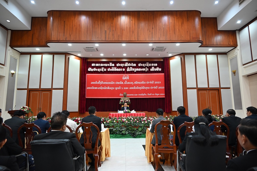 ໃນວັນທີ 03 ມິຖຸນາ 2024 ນີ້, ກະຊວງແຜນການ ແລະ ການລົງທຶນ ໄດ້ຈັດພິທີມອບໃບຢັ້ງຢືນໜ່ວຍພັກປອດໃສ, ເຂັ້ມແຂງ, ໜັກແໜ້ນ ປະຈໍາປີ 2023, ມອບບັດສະມາຊິກພັກສົມບູນ ຊຸດທີ 10, ມອບໃບຍ້ອງຍໍປະຈໍາປີ 2023 ພ້ອມທັງເຜີຍແຜ່-ເຊື່ອມຊຶມເອກະສານຈໍານວນໜຶ່ງ; ໃຫ້ກຽດເປັນປະທານໂດຍ ສະຫາຍ ປອ. ເພັດ ພົມພິພັກ ກຳມະການສູນກາງພັກ, ເລຂາຄະນະບໍລິຫານງານພັກ, ລັດຖະມົນຕີກະຊວງແຜນການ ແລະ ການລົງທຶນ ພ້ອມດ້ວຍບັນດາສະຫາຍກຳມະການຄະນະບໍລິຫານງານພັກກະຊວງ, ຄະນະພັກຮາກຖານ, ຄະນະໜ່ວຍພັກ, ສະມາຊິກພັກ-ພະນັກງານ ເຂົ້າຮ່ວມທັງໝົດ 271 ສະຫາຍ, ຍິງ 114 ສະຫາຍ.