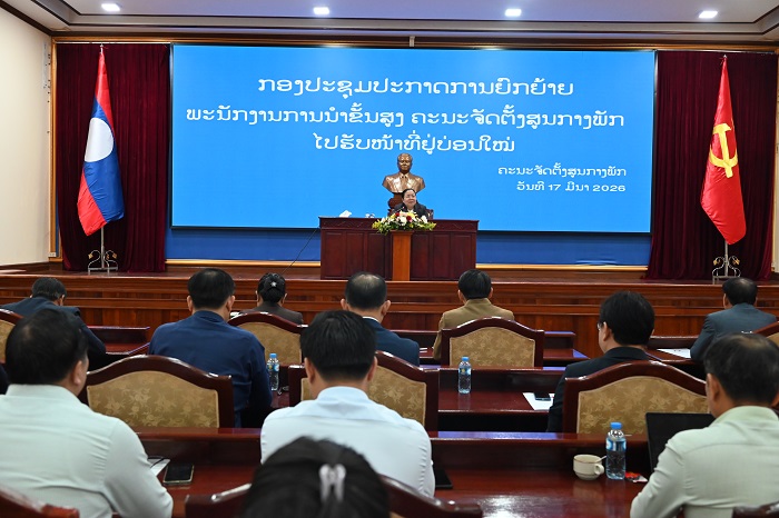 ຕອນເຊົ້າວັນທີ 17 ມີນາ 2026 ຢູ່ສະໂມສອນ ຄຈສພ (ຫຼັກ 6) ໄດ້ຈັດກອງປະຊຸມ ປະກາດການຍົກຍ້າຍພະນັກງານການນໍາຂັ້ນສູງໄປຮັບໜ້າທີ່ຢູ່ບ່ອນໃໝ່ ພາຍໃຕ້ການເປັນປະທານຂອງສະຫາຍ ນ. ສີໃສ ລືເດດມູນສອນ ກຳມະການກົມການເມືອງສູນກາງພັກ, ຄະນະເລຂາທິການສູນກາງພັກ, ເລຂາຄະນະພັກ, ຫົວໜ້າຄະນະຈັດຕັ້ງສູນກາງພັກ. ມີບັນດາຄະນະພັກ, ຄະນະຈັດຕັ້ງສູນກາງພັກ, ຄະນະກົມ, ຄະນະພະແນກ ຕະຫຼອດຮອດພະນັກງານວິຊາການຂອງຂະແໜງຈັດຕັ້ງເຂົ້າຮ່ວມຈຳນວນ 212 ສະຫາຍ, ຍິງ 83 ສະຫາຍ.