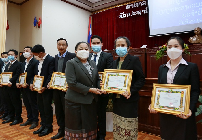 ໃນວາລະກອງປະຊຸມ ຍັງໄດ້ຍ້ອງຍໍພະນັກງານ-ລັດຖະກອນ ທີ່ມີຜົນງານດີເດັ່ນໃນການປະຕິບັດໜ້າທີ່ວຽກງານ ປະຈຳປີ 2021, ເດັ່ນປະເພດ I ໄດ້ຮັບໃບຍ້ອງຍໍ ຄຈສພ 46 ສະຫາຍ, ປະເພດ II ໄດ້ຮັບໃບຊົມເຊີຍ ຄຈສພ 62 ສະຫາຍ.