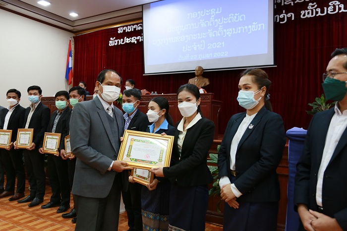 ໃນວັນທີ 22 ກຸມພາ 2022 ຄະນະຈັດຕັ້ງສູນກາງພັກ (ຄຈສພ) ໄດ້ຈັດກອງປະຊຸມສະຫຼຸບຕີລາຄາການຈັດຕັ້ງປະຕິບັດວຽກງານຂອງຕົນ ປະຈຳປີ 2021 ແລະ ທິດທາງ ປີ 2022 ໂດຍການເປັນປະທານຂອງສະຫາຍ ນາງ ສີໃສ ລືເດດມູນສອນ ກົມການເມືອງສູນກາງພັກ, ເລຂາທິການສູນກາງພັກ, ເລຂາຄະນະພັກ, ຫົວໜ້າຄະນະຈັດຕັ້ງສູນກາງພັກ, ມີຄະນະພັກຄະນະຈັດຄັ້ງສູນກາງພັກ, ຫົວໜ້າກົມ, ຮອງກົມ ພ້ອມດ້ວຍສະມາຊິກພັກ-ພະນັກງານທົ່ວ ຄຈສພ ເຂົ້າຮ່ວມຢ່າງພ້ອມພຽງ.