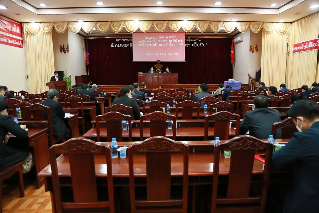 ກອງປະຊຸມ, ໄດ້ສະຫຼຸບຕີລາຄາການຈັດຕັ້ງປະຕິບັດແຜນການກໍ່ສ້າງໜ່ວຍພັກ ປອດໃສ ເຂັ້ມແຂງ ໜັກແໜ້ນ ປະຈຳປີ 2021, ໂດຍໄດ້ຍົກໃຫ້ເຫັນດ້ານດີ, ດ້ານອ່ອນ-ຂໍ້ຄົງຄ້າງ, ສາເຫດ, ບົດຮຽນທີ່ຖອດຖອນໄດ້ ແລະ ພ້ອມກັນຄົ້ນຄວ້າປະກອບຄຳຄິດຄຳເຫັນຢ່າງກົງໄປກົງມາ ເພື່ອວາງທິດທາງແຜນການໃນຕໍ່ໜ້າ, ຜ່ານການຕີລາຄາຄຸນນະພາບ ແລະ ແບ່ງປະເພດໜ່ວຍພັກຈາກ 08 ໜ່ວຍພັກ ສາມາດຢັ້ງຢືນເປັນໜ່ວຍພັກປອດໃສ ເຂັ້ມແຂງ ໜັກແໜ້ນ ໄດ້ 08 ໜ່ວຍພັກ ຄື: ໜ່ວຍພັກກົມກໍ່ສ້າງພັກ, ກົມກໍ່ສ້າງພະນັກງານ, ກົມຈັດຕັ້ງ-ພະນັກງານ, ກົມຄຸ້ມຄອງພະນັກງານ, ກົມປ້ອງກັນພັກ-ພະນັກງານ, ກົມກົງຈັກການຈັດຕັ້ງ ແລະ ກົດລະບຽບພັກ, ກົມໂຄສະນາກໍ່ສ້າງພັກ-ພະນັກງານ ແລະ ໜ່ວຍພັກຫ້ອງການ. ໃນນີ້ ການຕີລາຄາຄຸນນະພາບແບ່ງປະເພດສະມາຊິກພັກ ມີສະມາຊິກພັກປະເພດແຂງ 109 ສະຫາຍ, ຍິງ 47 ສະຫາຍ ເທົ່າກັບ 91%, ປະເພດກາງ 13 ສະຫາຍ, ຍິງ 08 ສະຫາຍ ເທົ່າກັບ 8.95%.