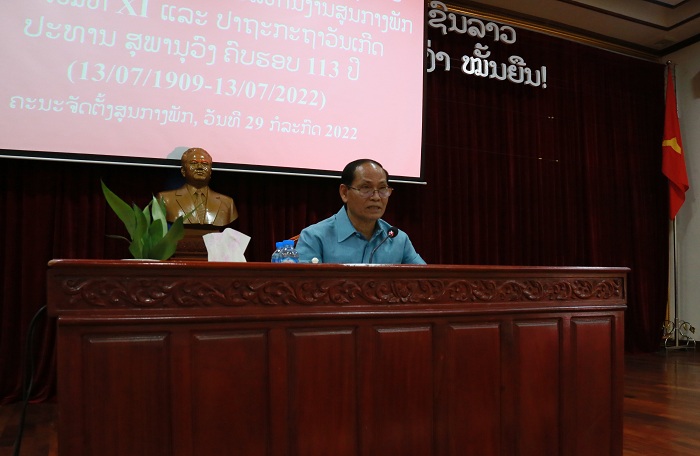 ໃນວັນທີ 29 ກໍລະກົດ 2022 ຄະນະຈັດຕັ້ງສູນກາງພັກ ໄດ້ຈັດກອງປະຊຸມເຜີຍແຜ່-ເຊື່ອມຊຶມມະຕິກອງປະຊຸມຄົບຄະນະບໍລິຫານງານສູນກາງພັກ ຄັ້ງທີ 4 ສະໄໝທີ XI ແລະ ປາຖະກະຖາວັນເກີດປະທານ ສຸພານຸວົງ ຄົບຮອບ 113 ປີ ໂດຍການໃຫ້ກຽດເຂົ້າຮ່ວມ ແລະ ເຜີຍແຜ່ເອກະສານດັ່ງກ່າວຂອງ ສະຫາຍ ນາງ ບຸດສະດີ ທະນະເມືອງ ກຳມະການສູນກາງພັກ, ຮອງເລຂາຄະນະພັກ, ຮອງຫົວໜ້າຄະນະຈັດຕັ້ງສູນກາງພັກ ແລະ ສະຫາຍ ທອງຈັນ ໂຂງພູມຄຳ ກຳມະການປະຈໍາພັກ, ຮອງຫົວໜ້າຄະນະຈັດຕັ້ງສູນກາງພັກ, ມີຄະນະນຳຫ້ອງການ, ຄະນະກົມ ແລະ ພະນັກງານ-ລັດຖະກອນທົ່ວສຳນັກງານຄະນະຈັດຕັ້ງສູນກາງພັກເຂົ້າຮ່ວມ.