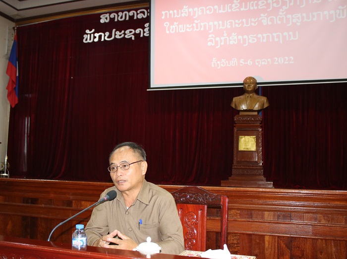 ໃນລະຫວ່າງວັນທີ 5-6 ຕຸລາ 2022 ຄະນະຈັດຕັ້ງສູນກາງພັກ ໄດ້ຈັດຊຸດຝຶກອົບຮົມໃນຫົວຂໍ້: “ການສ້າງຄວາມເຂັ້ມແຂງວຽກງານຈັດຕັ້ງ ໃຫ້ພະນັກງານຈັດຕັ້ງສູນກາງພັກຜູ້ທີ່ຈະລົງກໍ່ສ້າງຮາກຖານ” ໂດຍການເປັນປະທານຂອງສະຫາຍ ວຽນທອງ ສິງຄຳພັນ ຄະນະພັກ, ຫົວໜ້າກົມຈັດຕັ້ງ-ພະນັກງານ, ມີວິທະຍາກອນ, ສຳມະນາກອນ 20 ສະຫາຍ, ຍິງ 8 ສະຫາຍ ແລະ ຄະນະຮັບຜິດຊອບພາຍໃນຄະນະຈັດຕັ້ງສູນກາງພັກເຂົ້າຮ່ວມ.