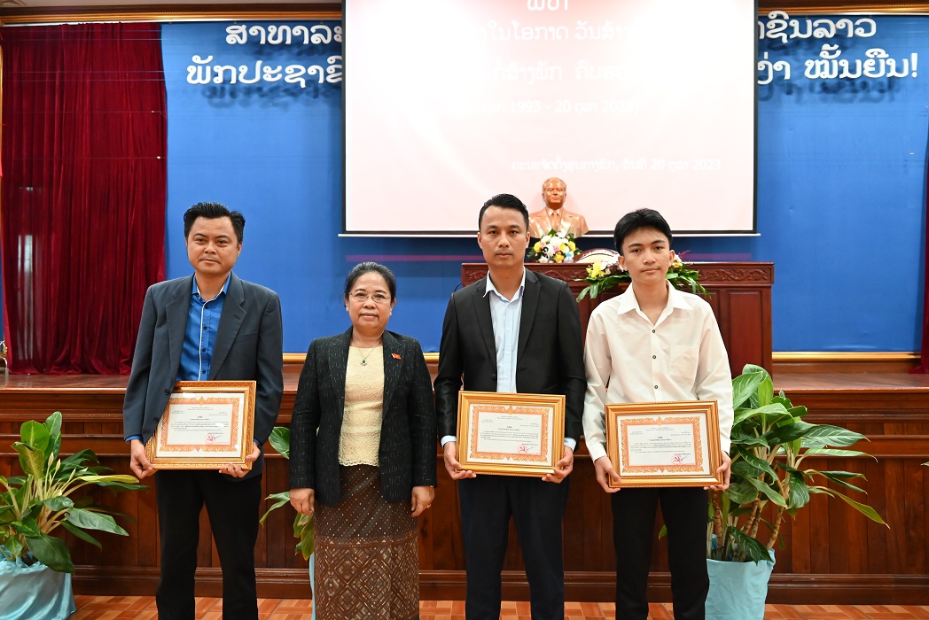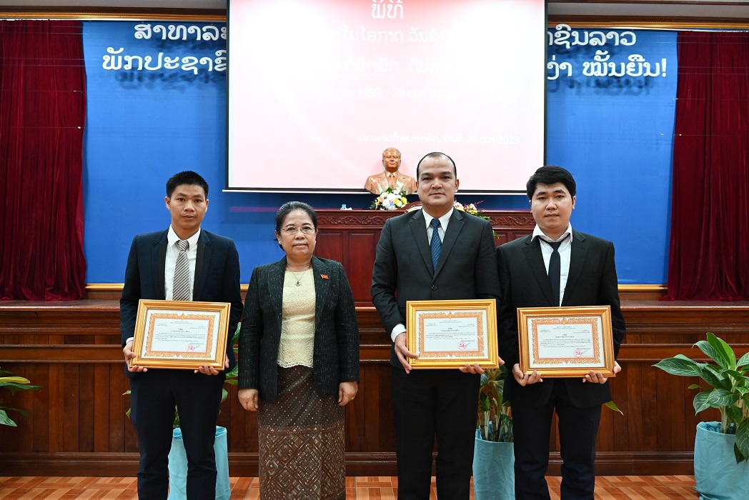 ຫຼັງຈາກນັ້ນ ໄດ້ມີພິທີມອບ-ຮັບໃບຍ້ອງຍໍ ແລະ ໃບຊົມເຊີຍໃຫ້ແກ່ພາກສ່ວນທີ່ໃຫ້ການອຸປະຖຳ ແລະ ມອບລາງວັນ ແລະ ໃບຢັ້ງຢືນ ໃຫ້ແກ່ຜູ້ຊະນະເລີດລາງວັນປະເພດ 1, ປະເພດ 2 ແລະ ປະເພດ 3 ໃນການບົດເຂົ້າປະກວດເນື່ອງໃນວັນສ້າງຕັ້ງວາລະສານກໍ່ສ້າງພັກ ຄົບຮອບ 30 ປີ.