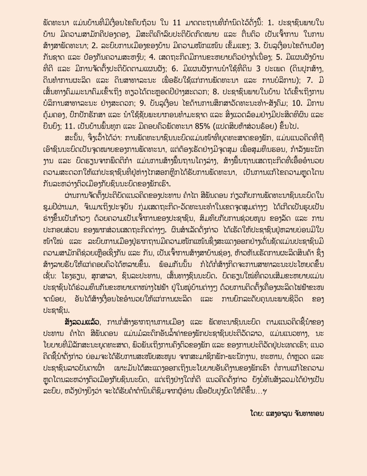 ປະທານ ຄຳໄຕ ສີພັນດອນ ກັບການກໍ່ສ້າງຮາກຖານການເມືອງ, ພັດທະນາຊົນນະບົດ