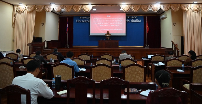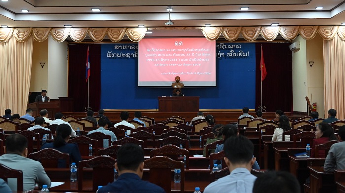 ໃນພິທີ ໄດ້ເລົ່າຄືນມູນເຊື້ອ 2 ວັນສໍາຄັນ ຂອງຊາດ ຄື: ວັນລັດຖະທຳມະນູນແຫ່ງຊາດ ຄົບຮອບ 33 ປີ (15 ສິງຫາ 1991 - 15 ສິງຫາ 2024) ແລະ ວັນຍຶດອໍານາດ 23 ສິງຫາ 1945 ແລະ ວັນຍຶດອຳນາດ 23 ສິງຫາ 1975 ເຊິ່ງໃຫ້ກຽດບັນຍາຍເອກະສານໂດຍ ສະຫາຍ ປອ. ວິສຸກ ພົມພິທັກ ກໍາມະການຄະນະພັກ, ຮອງຫົວຫນ້າຄະນະຈັດຕັ້ງສູນກາງພັກ ໂດຍໄດ້ຍົກໃຫ້ເຫັນເຖິງໝາກຜົນສຳເລັດອັນສະຫງ່າງາມໃນການຕໍ່ສູ້ປະຕິວັດຕ້ານສັດຕູ, ຄວາມສາມັກຄີເປັນຈິດໜຶ່ງໃຈດຽວຂອງປະຊາຊົນລາວບັນດາເຜົ່າ ພາຍໃຕ້ການນໍາພາຂອງພັກປະຊາຊົນປະຕິວັດລາວ ໂດຍການນໍາໃຊ້ 3 ບາດຄ້ອນຍຸດທະສາດ ຢຶດອໍານາດໂຄ່ນລົ້ມລະບອບເກົ່າທີ່ເນົ່າເໝັນ.
