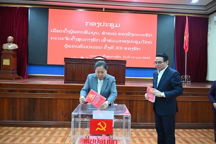 ໃນວັນທີ 14 ຕຸລາ 2025 ຢູ່ທີ່ ສະໂມສອນຄະນະຈັດຕັ້ງສູນກາງພັກ, ໄດ້ຈັດກອງປະຊຸມເລືອກຕັ້ງຜູ້ແທນສົມບູນ,ສຳຮອງ ຂອງອົງຄະນະພັກ ຄະນະຈັດຕັ້ງສູນກາງພັກ ເຂົ້າຮ່ວມກອງປະຊຸມໃຫຍ່ຜູ້ແທນທົ່ວປະເທດ ຄັ້ງທີ XII ຂອງພັກ ໂດຍການເປັນປະທານຂອງ ສະຫາຍ ນາງ ສີໃສ ລືເດດມູນສອນ ກໍາມະການກົມການເມືອງສູນກາງພັກ, ຄະນະເລຂາທິການສູນ ກາງພັກ, ເລຂາຄະນະພັກ, ຫົວໜ້າຄະນະຈັດຕັ້ງສູນກາງພັກ, ມີບັນດາສະຫາຍຄະນະບໍລິຫານງານພັກ ຄຈສພ, ຫົວໜ້າກົມ-ຮອງກົມ ແລະ ບັນດາສະມາຊິກພັກຂັ້ນພະແນກ ເຂົ້າຮ່ວມຈໍານວນ 148 ສະຫາຍ.