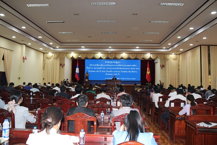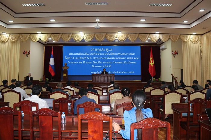 ໃນພິທີ, ໄດ້ຮັບຟັງການເຜີຍແຜ່-ເຊື່ອມຊຶມ ມະຕິຂອງຄະນະບໍລິຫານງານສູນກາງພັກ ຄັ້ງທີ 11 ສະໄໝທີ XI, ປາຖະກະຖາວັນສະຖາປະນາ ສປປ ລາວ ຄົບຮອບ 50 ປີ (02/12/1975-02/12/2025), ວັນເກີດ ປະທານ ໄກສອນ ພົມວິຫານ ຄົບຮອບ 105 ປີ (13/12/1920-13/12/2025), ເຊິ່ງໄດ້ຍົກໃຫ້ເຫັນເຖິງຄວາມໝາຍປະຫວັດສາດ, ແຫຼ່ງກໍາເນີດມູນເຊື້ອຮັກຊາດ, ມູນເຊື້ອດຸໝັ່ນໃນການອອກແຮງງານ, ຄວາມສາມັກຄີປອງດອງ, ການຕໍ່ສູ້ຢ່າງບໍ່ຍອມຈໍານົນຂອງບັນພະບູລຸດທີ່ໄດ້ເສຍສະຫຼະເລືອດເນື້ອຂອງຕົນ, ເດັດດ່ຽວຕ້ານການຮຸກຮານຂອງສັດຕູນໍາໄປສູ່ການປົດປ່ອຍຊາດ ແລະ ສະຖາປະນາ ສປປ ລາວຢ່າງມີກຽດສະຫງ່າ.
