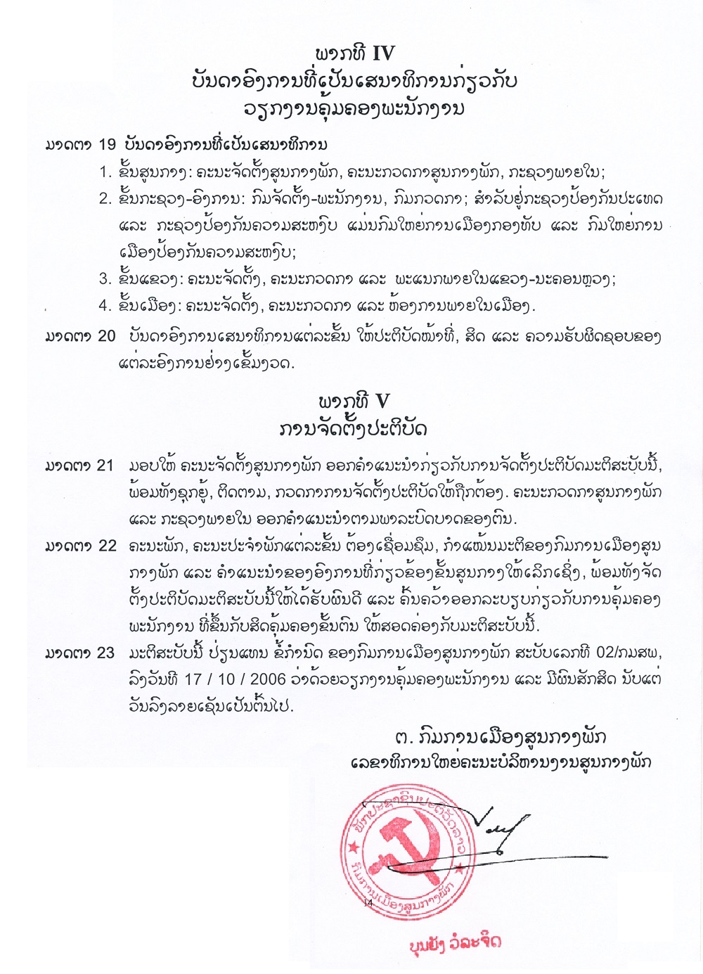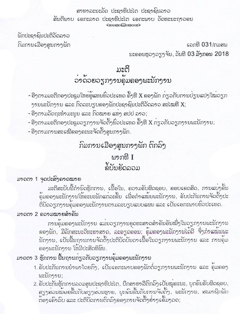 ມະຕິ ເລກທີ 031/ກມສພ ວ່າດ້ວຍວຽກງານຄຸ້ມຄອງພະນັກງານ