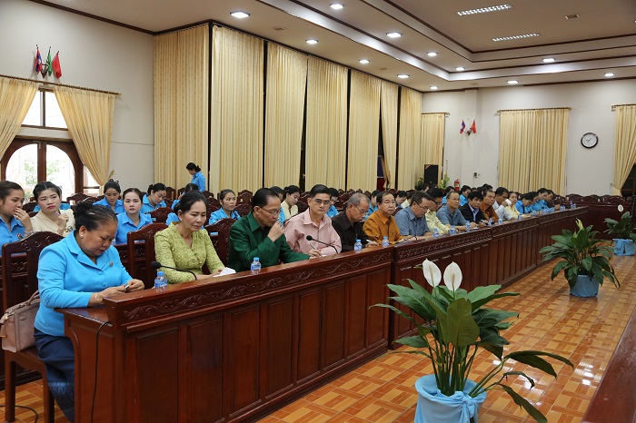 ໃນຕອນທ້າຍ ກອງປະຊຸມຍັງໄດ້ຮັບຖການໂອລົມຂອງສະຫາຍ ວັນໄຊ ພອງສະຫວັນ ຮອງເລຂາຄະນະພັກ, ຮອງຫົວໜ້າຄະນະຈັດຕັ້ງສູນກາງພັກ ໄດ້ສະແດງຄວາມຍ້ອງຍໍຊົມເຊີຍຄຕໍ່ຜົນສຳເລັດໃນ 1 ປີຜ່ານມາທີ່ສະຫະພັນ ແມ່ຍິງຍາດມາໄດ້ ແຕ່ເຖິງຢ່າງໃດກໍຕາມຈາກຜົນງານ-ຜົນສໍາເລັດໃນຫລາຍດ້ານທີ່ກ່າວມານັ້ນຕາມແຕ່ຖ້າທຽບໃສ່ຄວາມ ຮຽກຮ້ອງຕ້ອງການໃນເງື່ອນໄຂໃໝ່ ທີ່ປະເທດຊາດຂອງພວກເຮົາ ກຳລັງພັດທະນາ ເຫັນວ່າແມ່ຍິງ ພວກເຮົາຈະຕ້ອງໄດ້ພ້ອມກັນສືບຕໍ່ສູ້ຊົນບຸກບືນ, ຈັດຕັ້ງປະຕິບັດວຽກງານແມ່ຍິງ ຕິດພັນກັບວຽກ ງານວິຊາສະເພາະໃຫ້ບັນລຸ ຜົນສຳເລັດ ຕາມຄາດໝາຍນັ້ນ, ເອື້ອຍນ້ອງແມ່ຍິງຕ້ອງເອົາໃຈໃສ່ຝຶກຝົນຫຼໍ່ຫຼອມຕົນເອງ ໃຫ້ມີຄຸນທາດການເມືອງ ໜັກແໜ້ນ, ມີຄຸນສົມບັດສິນທຳປະຕິວັດ, ຫ້າວຫັນບຸກບືນສູ້ຊົນປະຕິບັດໜ້າທີ່ການເມືອງທີ່ໄດ້ຮັບ ມອບໝາຍ, ດຸໝັ່ນຂະຫຍັນ ພຽນຄົ້ນຄວ້າຮໍ່າຮຽນແນວທາງ, ແຜນນະໂຍບາຍຂອງພັກ, ກົດໝາຍຂອງລັດ; ຄະນະສະຫະພັນແມ່ຍິງ ແລະ ຄະນະໜ່ວຍ ເອົາໃຈໃສ່ໃນການປະຕິບັດພາລະບົດບາດ, ສິດ, ໜ້າທີ່ ຂອງ ຕົນເອງ ດ້ວຍຄວາມຮັບຜິດຊອບສູງ ແລະ ເປັນເຈົ້າການ ເລັ່ງໃສ່ປັບປຸງແບບແຜນວິທີ ການນໍາພາ ໃຫ້ແທດກັບຕົວຈິງ, ເຮັດວຽກຢ່າງມີແຜນການ, ແຜນງານ, ໂຄງການໃຫ້ມີຈຸດສຸມລະອຽດ, ຖອດຖອນບົດຮຽນ ເພື່ອໃຫ້ເຫັນອັນດີທີ່ຈະຕ້ອງໄດ້ສືບຕໍ່ສົ່ງເສີມ ແລະ ຈຸດຄົງ ຄ້າງທີ່ຈະຕ້ອງ ໄດ້ແກ້ໄຂ ພ້ອມກັ້ນນັ້ນ ກໍພ້ອມກັນຕັ້ງໜ້າປະກອບສ່ວນໃນການຕ້ານ ແລະ ສະກັດກັ້ນປະກົດການຫຍໍ້ທໍ້ໃນສັງຄົມທີ່ມີບັນຫາໃນ ປະຈຸບັນເຊັ່ນ: ຫລີ້ນກິນຟຸມເຟື່ອຍ, ຕິດສື່ອອນໄລ ແລະ ໄພສັງຄົມອື່ນໆ. ເປັນເຈົ້າການເສີມ ຂະຫຍາຍມູນເຊື້ອວັດທະນາທຳອັນດີງາມຂອງຊາດ, ສະແດງອອກໃນການນຸ່ງຖືຖຶກຕາມຮີດຄອງປະເພນີ, ຖືກຕາມກາລະເທສະ, ດ້ວຍຄວາມເຊື່ອໝັ້ນວ່າ ບັນດາສະຫາຍສະມາຊິກສະຫະພັນແມ່ຍິງ ຈະພ້ອມກັນເພີ່ມທະວີຄວາມສາມັກຄີ ເປັນປຶກແຜ່ນແໜ້ນໜາສືບຕໍ່, ຕັ້ງໜ້າເສີມຂະຫຍາຍມູນເຊື້ອຮັກຊາດ, ມູນເຊື້ອວັດທະນະທຳອັນດີງາມຂອງຊາດ, ມູນເຊື້ອດຸໝັ່ນຂະ ຫຍັນພຽນ, ໂອບອ້ອມອາລີ, ປະກອບສ່ວນໃນການປະຕິບັດໜ້າທີ່ການເມືອງທີ່ໄດ້ຮັບມອບໝາຍໃຫ້ມີຜົນສຳເລັດອັນໃໝ່ໃຫຍ່ຫຼວງກວ່າເກົ່າ…ຯ