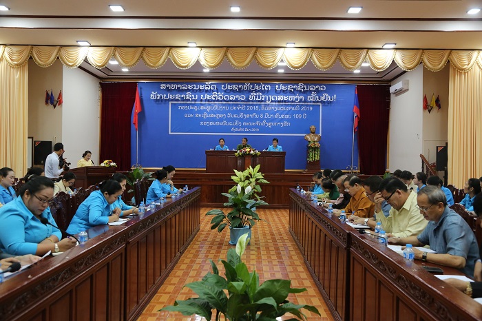ກອງປະຊຸມໃນຄັ້ງນີ້ ໄດ້ຮັບຟັງການກ່າວຈຸດປະສົງ ແລະ ການເຜີຍແຜ່ມະຕິກອງປະຊຸມຄົບຄະນະບໍລິຫານ ງານສູນກາງສະຫະພັນແມ່ຍິງລາວ ຄັ້ງທີ 4 ສະໄໝທີ VII , ມະຕິກອງປະຊຸມເປີດກວ້າງຄະນະກຳມາທິການແຫ່ງຊາດ ເພື່ອຄວາມກ້າວໜ້າຂອງແມ່ຍິງ ແລະ ແມ່-ເດັກ ປະຈຳປີ 2018, ເລົ່າມູນເຊື້ອວັນແມ່ຍິງສາກົນ ຄົບຮອບ 109 ປີ ແລະ ຮັບຟັງການສະຫຼຸບຕີລາຄາການເຄື່ອຍນໄຫວ ວຽກງານສະຫະພັນແມ່ຍິງ ຄະນະຈັດຕັ້ງສູນກາງພັກ ປະຈຳປີ 2018 ຈາກສະຫາຍ ນາງ ວິໄລ ອຸ່ນມີໄຊ ປະທານສະ ຫະພັນແມ່ຍິງຄະນະຈັດຕັ້ງສູນກາງພັກ, ສະຫາຍ ນາງ ແສງວອນ ແກ້ວນິນັນລັດ ຮອງປະທານສະຫະພັນແມ່ຍິງ ຄະນະ ຈັດຕັ້ງສູນກາງພັກ ໂດຍໄດ້ຍົກໃຫ້ເຫັນຜົນງານໃນແຕ່ລະດ້ານ ດ້ານການເມືອງ-ແນວຄິດ ກໍຖືເອົາເປັນວຽກງານໜຶ່ງທີ່ມີ ຄວາມສຳຄັນ ສະມາຊິກສະຫະພັນແມ່ຍິງກໍໄດ້ມີການ ເຂົ້າຮ່ວມຮັບຟັງເຜີຍແຜ່ເຊື່ອມຊຶມບັນດາເອກສານ ສຳຄັນຕ່າງໆ ຂອງພັກ, ຂອງຊາດ ແລະ ການດເຂົ້າຮ່ວມການປະຖະ ກະຖາວັນສຳຄັນຕ່າງໆ ມີຜູ້ເຂົ້າຮ່ວມ 336 ເທື່ອຄົນ, ດ້ານ ວຽກງານວິຊາສະເພາະຄະນະສະຫະພັນແມ່ຍິງ ກໍໄດ້ເອົາໃຈ ໃສ່ຊີ້ນຳສະມາຊິກສະຫະພັນແມ່ຍິງ ໃນການຕັ້ງໜ້າຈັດຕັ້ງ ປະ ຕິບັດວຽກງານວິຊາສະເພາະຂອງຕົນດ້ວຍຄວາມຮັບຜິດ ຊອບ ສູງ ສະແດງອອກໃນຳໄລຍະຜ່ານມາ ຄະນະພັກ ຄະນະຈັດຕັ້ງສູນກາງພັກ ໄດ້ຊີ້ນຳ-ນຳພາວຽກງານສ້າງພະນັກງານ ເພດຍິງດ້ວຍການຫັນລົງທ້ອງຖິ່ນຮາກຖານ 56 ເທື່ອຄົນ, ລົງກະຊວງ-ອົງການ 23 ເທື່ອຄົນ, ເພື່ອຮຽນ ຮູ້ຈາກວຽກງານຕົວຈິງ; ໄປຍົກລະດັບໄລຍະຍາວຈຳນວນ 05 ສະຫາຍ, ຢູ່ພາຍໃນ 04 ສະຫາຍ ແລະ ຕ່າງປະເທດ 01 ສະຫາຍ, ບຳລຸງໄລຍະສັ້ນ 32 ສະຫາຍ, ພາຍໃນປະເທດ 31 ສະຫາຍ, ຕ່າງປະເທດ 01 ສະຫາຍ. ປະຈຸບັນ ສະມາຊິກແມ່ຍິງມີລະດັບວິຊາສະເພາະປະລິນຍາໂທ 16 ສະຫາຍ, ປະລິນຍາຕີ 59 ສະຫາຍ, ຊັ້ນສູງ 06 ສະຫາຍ, ຊັ້ນກາງ 01 ສະຫາຍ. ການຈັດຕັ້ງປະຕິບັດຂໍ້ແຂ່ງຂັນ 3 ດີ: ຄະນະສະຫະພັນແມ່ຍິງ ໄດ້ເອົາໃຈໃສ່ໃນການຕິດຕາມ ການປະຕິບັດວຽກງານວິຊາສະເພາະ, ໄດ້ສ້າງແຜນການອັນລະອຽດໃນການປະເມີນຜົນ,ໄດ້ກຳນົດເອົາທຸກ ເດືອນມິຖຸນາຂອງແຕ່ລະປີ, ໃນນັ້ນ ປີ 2018 ໄດ້ປະເມີນສະມາຊິກແມ່ຍິງ 3 ດີປະເພດ I ມີ 54 ສະ ຫາຍ ກວມ 66%, ປະເພດ II ມີ 16 ສະຫາຍ ແລະ ໜ່ວຍແມ່ຍິງ 3 ດີມີ 10 ໜ່ວຍ ກວມ 100%, ປະ ເມີນຜົນສະມາຊິກແມ່ຍິງ 3 ດີໄລຍະກາງສະໄໝ (2016-2018) ໄດ້ປະເພດ I ຈຳນວນ 27 ສະຫາຍ, ສະຫຼຸບການຈັດຕັ້ງປະຕິບັດຂໍ້ແຂ່ງຂັນ 3 ດີປະຈຳສົກປີ 2017-2018, ວາງທິດທາງແຜນການປະຈຳສົກ ປີ 2018-2019 ແລະ ສະຫຼຸບການຈັດຕັ້ງປະຕິບັດຂໍ້ແຂ່ງຂັນ 3 ດີ ໄລຍະທີ I (2016-2018) ແລະ ເປີດ ບັ້ນແຂ່ງຂັນໄລຍະທີ II (2019-2020).