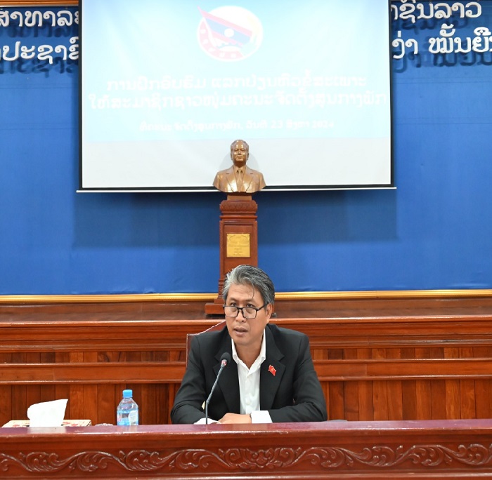 ການຈັດຝຶກອົບຮົມຄັ້ງນີ້ ເປັນໜຶ່ງໃນກິດຈະກໍາລວມ ເພື່ອສ້າງຂະບວນການຂໍ່ານັບຮັບຕ້ອນກອງປະຊຸມໃຫຍ່ 3 ຂັ້ນຂອງພັກ ເວົ້າລວມ, ເວົ້າສະເພາະ ແມ່ນການສ້າງຂະບວນການຂໍ່ານັບຮັບຕ້ອນກອງປະຊຸມໃຫຍ່ 3 ຂັ້ນຂອງຊາວໜຸ່ມ ເຊິ່ງປະຈຸບັນ ແມ່ນພວມສຸມໃສ່ກະກຽມດໍາເນີນກອງປະຊຸມໃຫຍ່ຂັ້ນໜ່ວຍຊາວໜຸ່ມຮາກຖານ, ກອງປະຊຸມໃຫຍ່ສະມາຊິກຊາວໜຸ່ມ ຄຈສພ ໃຫ້ສໍາເລັດຕາມກໍານົດເວລາ ໃນທ້າຍປີ 2024. ຊຸດຝຶກອົບຮົມຄັ້ງນີ້ ໃຊ້ເວລາ 1 ວັນ, ມີຫົວຂໍ້ບົດຂຶ້ນນໍາສະເໜີແລກປ່ຽນບົດຮຽນເຊິ່ງກັນ ແລະ ກັນ ທັງຫມົດ 4 ຫົວຂໍ້ ຄື: 1. ວຽກງານການກະກຽມ ແລະ ດໍາເນີນກອງປະຊຸມໃຫຍ່ຂອງພັກ ນໍາສະເໜີໂດຍ ໜ່ວຍຊາວໜຸ່ມກົມກົງຈັກການຈັດຕັ້ງ ແລະ ກົດລະບຽບພັກ; 2. ວຽກງານຄຸ້ມຄອງພະນັກງານ ນໍາສະເໜີໂດຍ ໜ່ວຍຊາວໜຸ່ມ ກົມຄຸ້ມຄອງພະນັກງານ; 3. ຍົກສູງຄຸນນະພາບສະມາຊິກພັກ ແລະ ວຽກງານຂະຫຍາຍພັກ ໃນໄລຍະໃໝ່ ນໍາສະເໜີໂດຍ ໜ່ວຍຊາວໜຸ່ມກົມກໍ່ສ້າງພັກ; 4. ຄວາມຮູ້ພື້ນຖານວຽກງານໂຄສະນາ ແລະ ການຂຽນບົດຄວາມ ນໍາສະເໜີໂດຍ ໜ່ວຍຊາວໜຸ່ມກົມໂຄສະນາກໍ່ສ້າງພັກ-ພະນັກງານ.